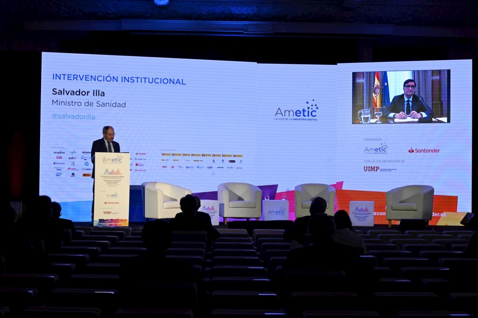 El ministro de Sanidad, Salvador Illa, ha intervenido en la Segunda jornada de la 34ª edición del Encuentro de la Economía Digital y las Telecomunicaciones organizada por AMETIC. El ministro, ha manifestado la importancia del uso de la digitalización de los datos en el futuro de la industria digital. También ha asegurado que “la inversión en digitalización de la salud no es un gasto, sino que supone una de las palancas tractoras del desarrollo de la sociedad”.