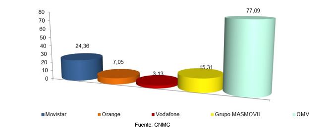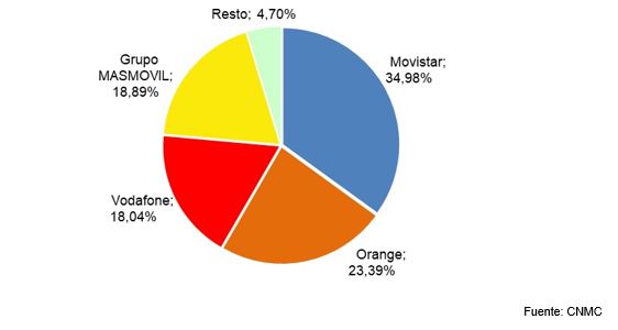 El 76,4% del total de líneas se concentra en los tres principales operadores, Movistar, Orange (incluido Jazztel) y Vodafone (incluido Ono).
