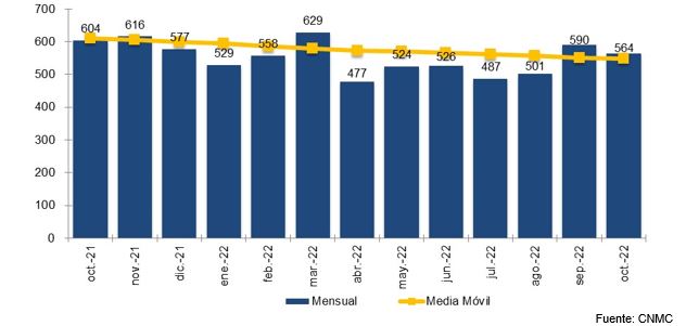 En octubre se portaron 563.585 números móviles, lo que supone un 6,6% menos que el volumen registrado en el mismo mes de 2021.