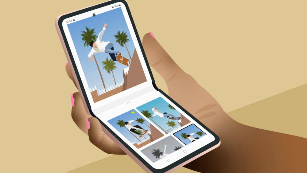 Con tantas formas de crear fotos y vídeos, a veces puede ser difícil decidir qué es lo mejor en cada momento. Captura única, una función característica de los dispositivos Samsung y que está disponible en Galaxy Z Flip, es una opción perfecta para los creadores. Sólo tienen que mantener presionado el botón de la cámara para grabar el contenido que quieras en diferentes formatos. Posteriormente, el dispositivo muestra las mejores fotos y vídeos, por lo que no es necesario desplazarse por la galería para encontrar la publicación perfecta.