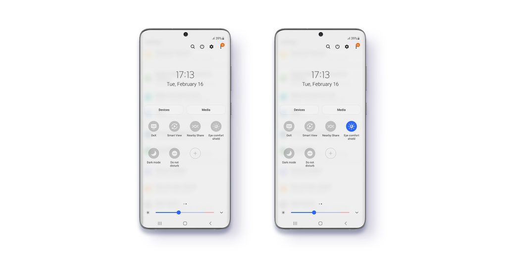 Para encontrar el nuevo modo Protector de la vista de One UI 3.1, que ajusta automáticamente la luz azul según la hora del día, sólo hay que dirigirse al panel de Configuración. Se pueden usar los tonos más cálidos de Protector de la vista para conciliar el sueño más fácilmente por la noche. Ahora también es posible configurar el dispositivo para que ajuste automáticamente los colores de la pantalla durante el día o personalizar el horario.