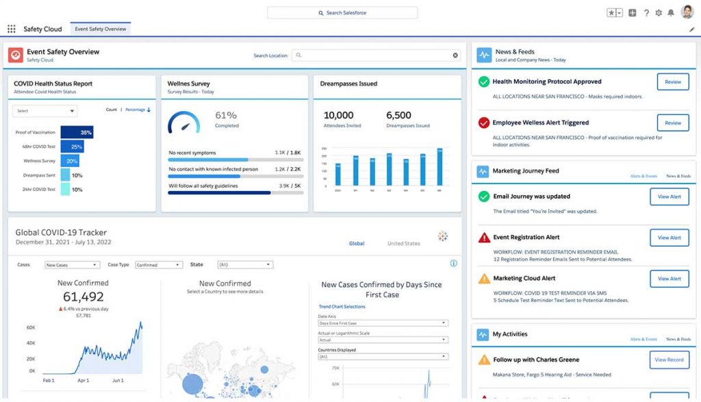Actualmente, Salesforce ha utilizado Safety Cloud para reabrir 84 de sus oficinas mundiales y celebrar dos de sus eventos corporativos de mayor envergadura, haciendo que los empleados, clientes y partners se sientan más seguros. Sólo para Dreamforce SF y NYC, la compañía facilitó más de 14.500 pruebas de COVID-19 y más de 8.000 credenciales de vacunas, reuniendo a más de 4.500 asistentes de forma segura para los eventos patrocinados por la empresa.
