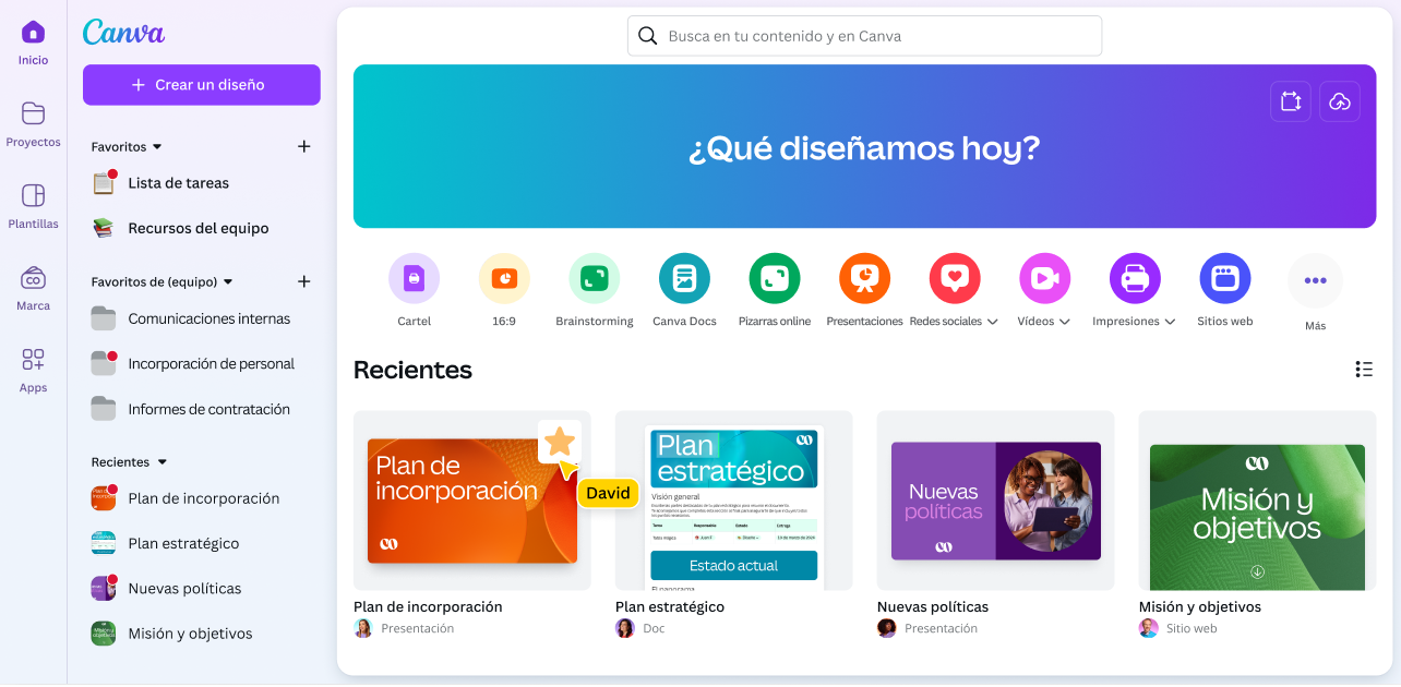 ● Una nueva página de inicio personalizable. Los espacios de trabajo son ahora personalizables. Las personas usuarias pueden marcar como favoritos los diseños, carpetas y plantillas de la marca, mientras que las empresas pueden fijar el contenido para toda la corporación o para equipos en la parte superior de la página. Además, la potente interfaz de búsqueda con filtros avanzados permite ahorrar tiempo a la hora de buscar para poder dedicarlo a crear.