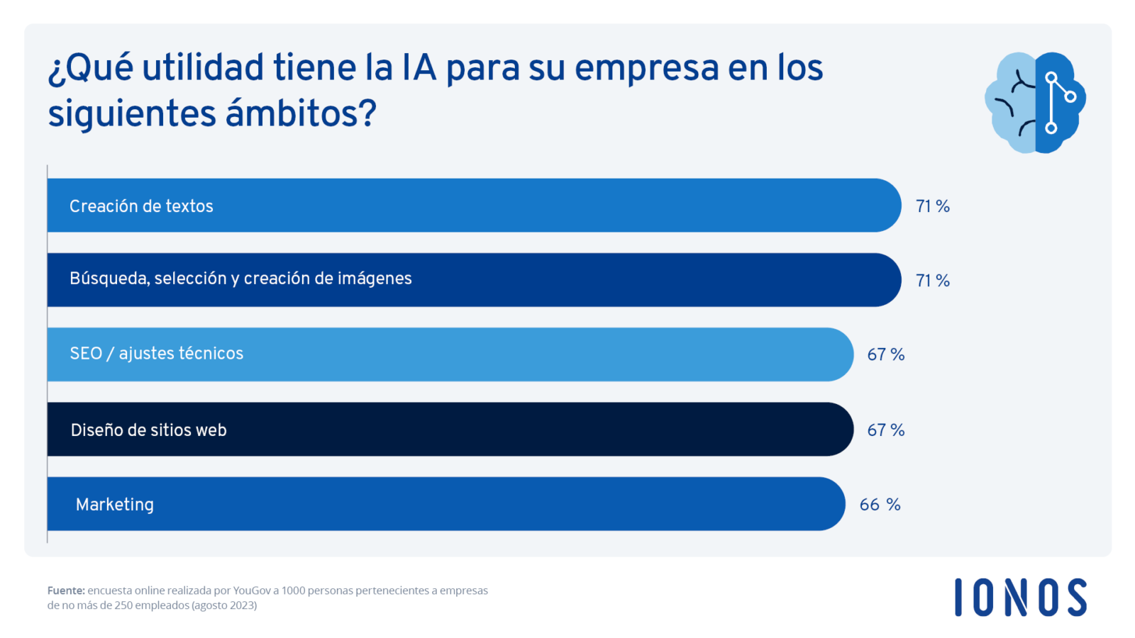 El estudio, realizado por YouGov para IONOS en esos cinco países, encuestó a un total de 4.800 empresas de hasta 250 empleados, y analizó la percepción de las pequeñas y medianas empresas sobre el uso de la IA en el ámbito empresarial, los riesgos, ventajas y otras consideraciones en un momento en el que esta tecnología está cada vez más presente en el ámbito empresarial.