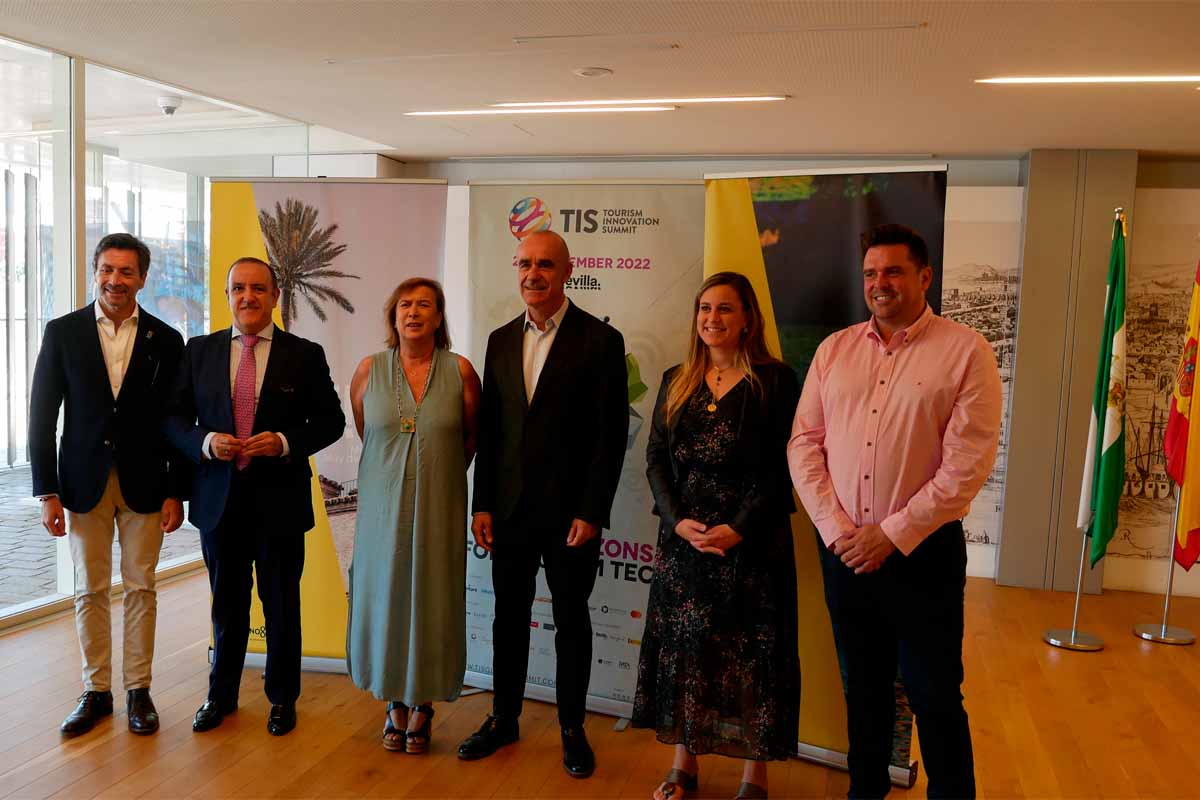 Antonio Muñoz, alcalde de Sevilla, y Yolanda de Aguilar, Secretaria General para el Turismo de la Junta de Andalucía, junto con Francisco Páez, teniente de alcalde y delegado de turismo del Ayuntamiento de Sevilla; Antonio Jiménez, director gerente de Sevilla City Office; Silvia Avilés, directora de TIS-Tourism Innovation Summit; y Edgar Weggelaar, director del Tourism Innovation Global Summit, el congreso líder en el sector del turismo que se organiza en el marco de TIS, han presentado las novedades de esta tercera edición.