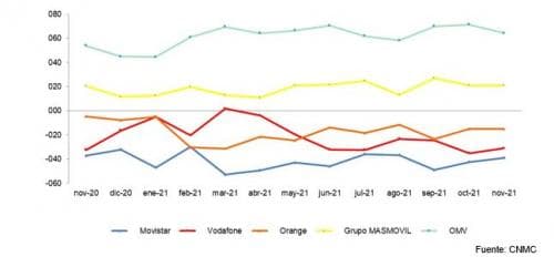 La portabilidad móvil superó los 600 mil cambios de operador. Grupo MASMOVIL y los OMV se anotaron saldos netos de portabilidad positivos, mientras que Vodafone, Orange y Movistar presentaron saldos negativos.