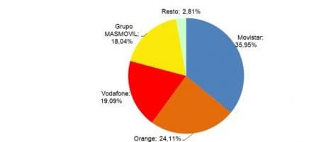 El 79,1% del total de líneas se concentra en los tres principales operadores, Movistar, Orange (incluido Jazztel) y Vodafone (incluido Ono).