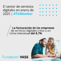 El sector de servicios digitales en España registró un aumento interanual del 8,7% en su facturación en octubre de 2024, según el barómetro TIC Monitor , elaborado por la Fundación VASS y el Centro de Predicciones Económicas (CEPREDE). Este crecimiento sitúa el promedio de los primeros diez meses del año en un sólido 9,5%, destacando la resiliencia del sector frente a un entorno económico global más incierto.