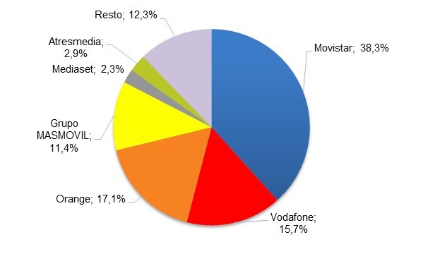 Aunque las cifras son claras, es relevante subrayar que el 72,8 % de las líneas de banda ancha fija son propiedad de Movistar, Orange y Grupo MASMOVIL.