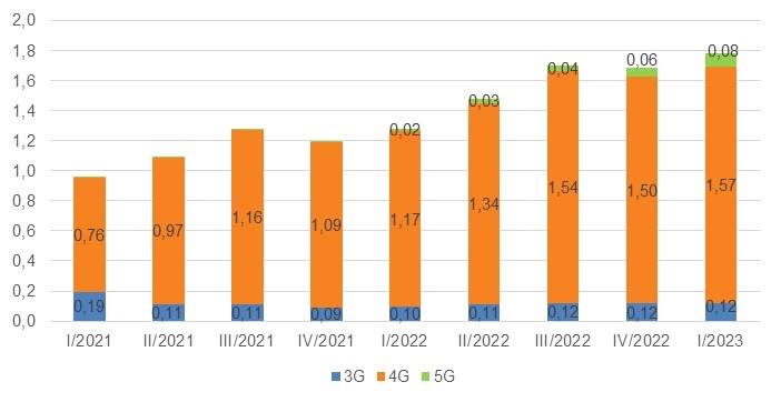 Finalmente, en el ámbito del tráfico de banda ancha móvil, el primer trimestre de 2023 cerró con un total de 1,8 millones de Terabytes consumidos, lo que implica un crecimiento del 38,7 % en comparación con el mismo período del año anterior, evidenciando la creciente demanda de servicios de datos por parte de los usuarios.
