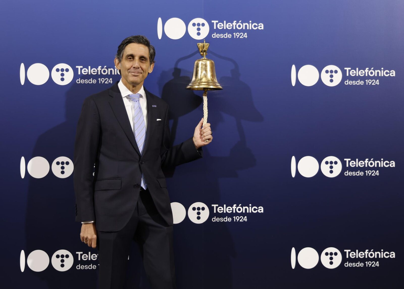 Telefónica ha sido la Invitada de Honor en la Bolsa de Madrid en el mismo día en que se cumplen 100 años de su constitución como compañía, que tuvo lugar el 19 de abril de 1924. Con motivo de este aniversario, su presidente, José María Álvarez-Pallete, ha protagonizado el tradicional toque de campana en este homenaje a una empresa centenaria y cotizada desde sus inicios.