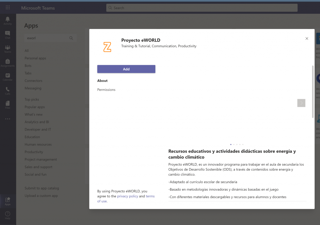 El Proyecto eWORLD ya se encuentra disponible a través de Microsoft Teams, la plataforma educativa de Microsoft, que ha alcanzado los 200 millones de usuarios en todo el mundo.