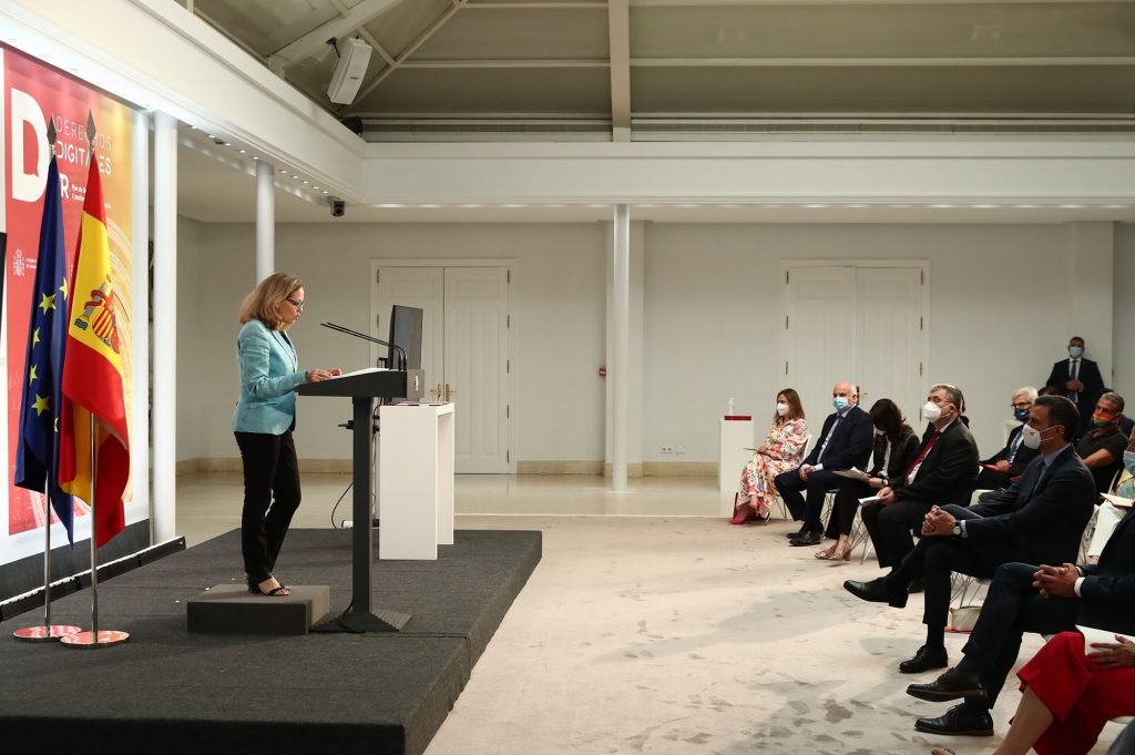 Calviño ha aseverado que estamos ante «un proyecto muy ambicioso en el que el Gobierno ha trabajado intensamente desde hace más de un año», ya que la digitalización es una de las prioridades del Ejecutivo y tiene una gran importancia en el Plan de Recuperación, Transformación y Resiliencia. A su juicio, el objetivo es «garantizar una digitalización humanista que ponga en el centro a las personas».