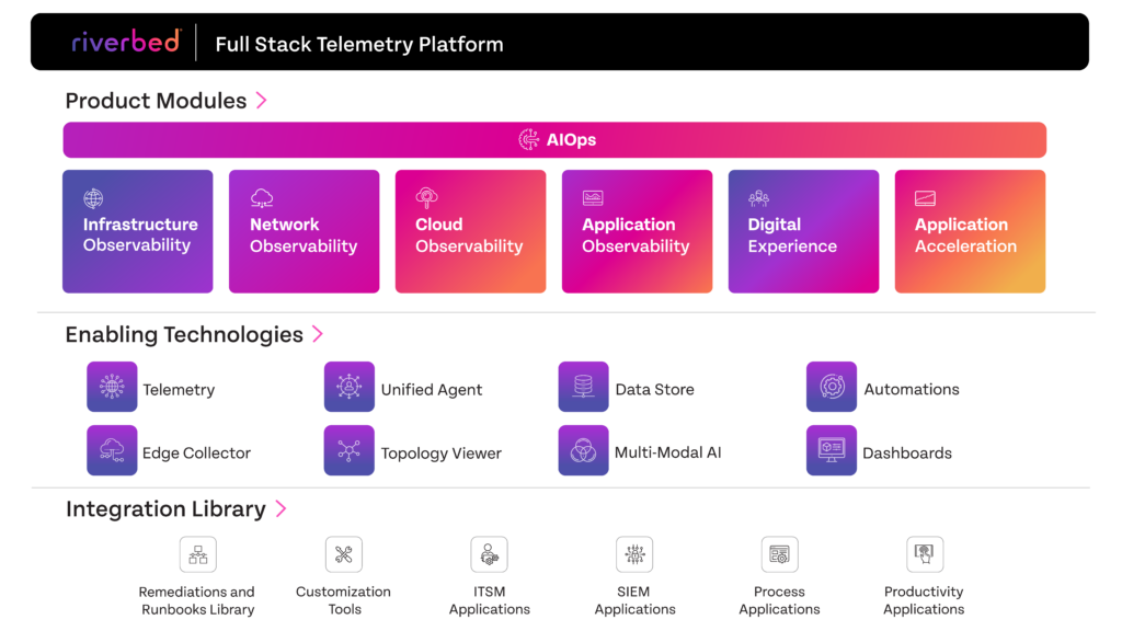 La plataforma impulsada por IA de Riverbed recopila datos en toda la pila tecnológica para garantizar resultados de IA precisos, reduciendo en última instancia el tiempo y los costes de resolución de problemas de TI y ofreciendo mejores experiencias digitales a los usuarios finales.