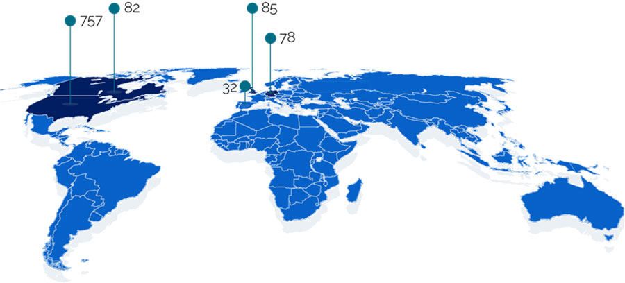 Si revisamos el número de casos por cada territorio analizado, Estados Unidos encabeza el ranking de países más afectados por ransomware en los últimos seis meses del año con un total de 757 ataques, siendo el principal objetivo de los ciberdelincuentes para dirigir este tipo de malware. Reino Unido, Canadá, Alemania y Francia lideran el top 5 junto a EEUU; y España, con 32 ataques de ransomware registrados, ocupa el octavo lugar por detrás de Brasil y Japón.