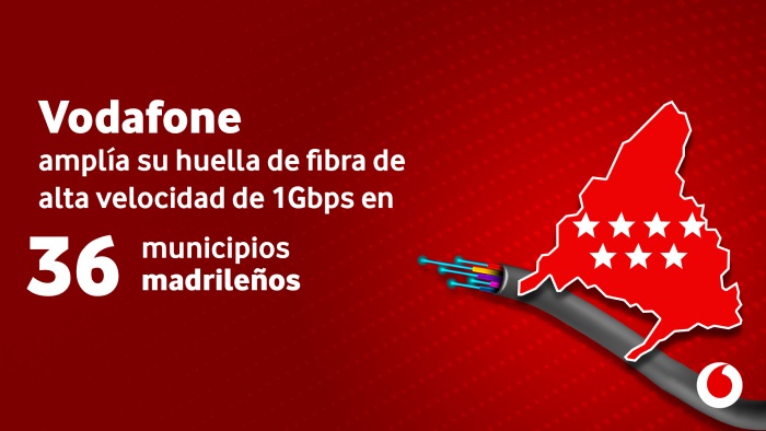 Vodafone España ha ampliado su cobertura de fibra óptica en 36 municipios de la Comunidad de Madrid . Esta ampliación implicará que casi 8.000 nuevas unidades inmobiliarias tengan la posibilidad de contratar la fibra con Vodafone de 1Gbps de velocidad.