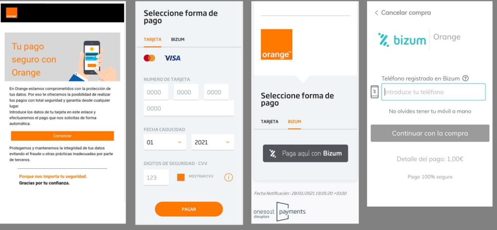 Una vez realizado el contacto con los agentes de atención al cliente para cualquiera de las citadas transacciones con la compañía, el cliente recibirá por la vía que haya elegido (SMS o correo electrónico) un enlace para seleccionar el medio de pago, que ahora incluirá también Bizum. Próximamente también se habilitará este servicio en las apps de estas marcas, mejorando así aún más la experiencia del cliente de Orange a través de la digitalización y autogestión de los procesos.