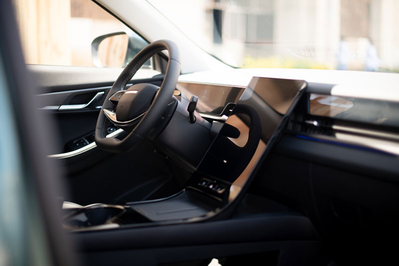 El interior del JAECOO 5 presenta un ecosistema digital centralizado que integra funciones de infoentretenimiento, climatización, gestión de asistentes a la conducción y conectividad multimedia. La interfaz principal está constituida por una pantalla táctil vertical de 13,2 pulgadas, complementada por un display de instrumentación digital de 8,88 pulgadas.