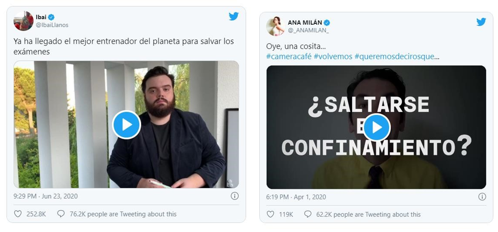 Otros de los Tweets más populares nos hicieron reír como el humor de Ibai Llanos, o del equipo de Camera Café, que nos arrancaba una nostálgica sonrisa recordándonos la gravedad de no respetar las medidas sanitarias.