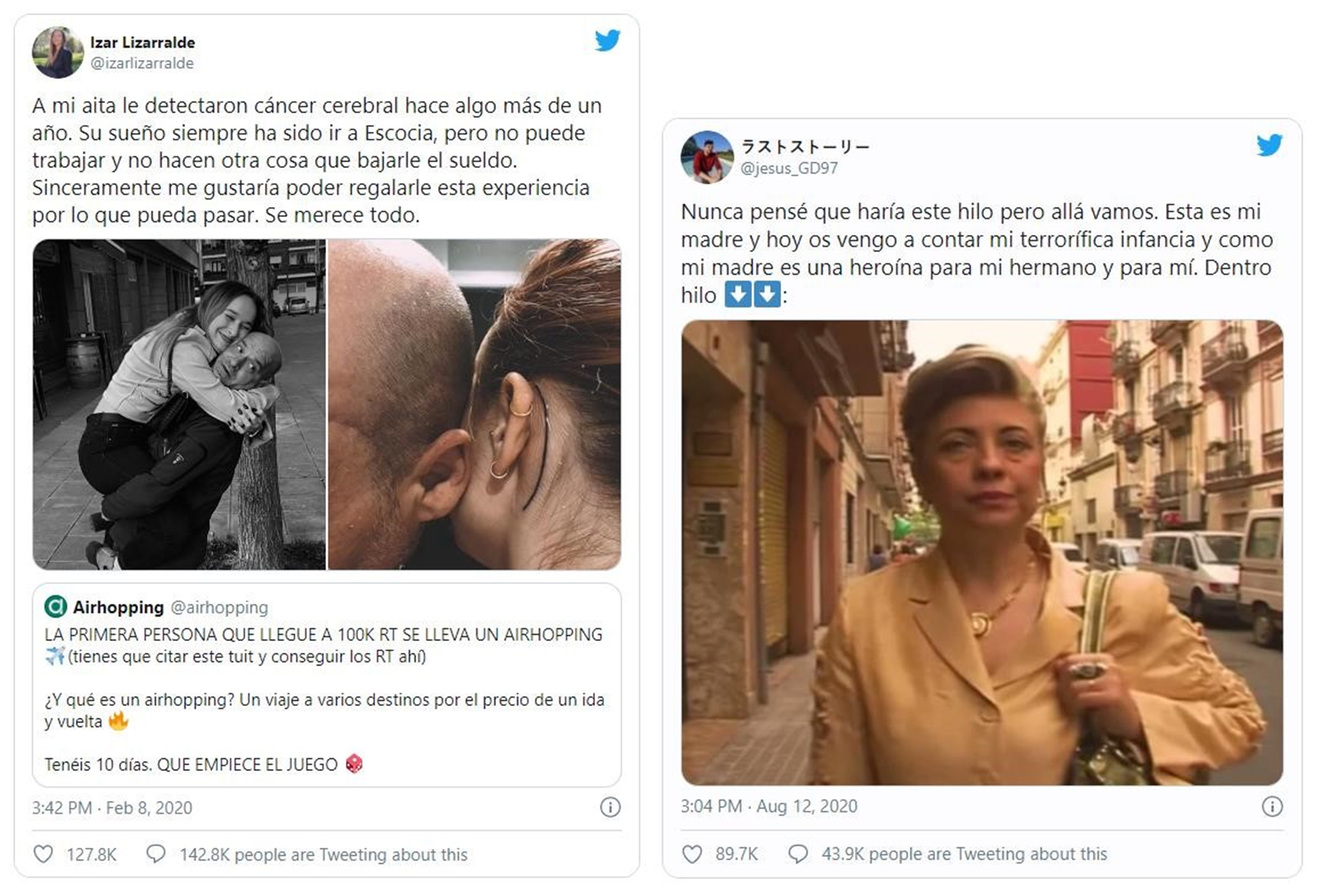 Y nos emocionamos con las historias anónimas más emotivas, quizás por ver cumplir sueños en momentos tan complicados, como el deseo de una hija de querer hacer realidad la ilusión de su aita; o la voluntad de este hijo por dar a conocer la historia de su madre.
