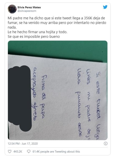 Se suman este Tweet de @DANIROVIRA sobre su historia de superación del cáncer y la demostración de que la comunidad de Twitter siempre está dispuesta a hacer su magia para ayudar: @silviapeerezm quería que su padre dejara de fumar y ¡por supuesto que lo consiguió!