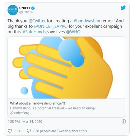Finalmente, el top de los emojis más utilizados: ? ? ? ? ?, se cuela este año en segunda posición el emoticono de la cara suplicante, siendo utilizado hasta por Rosalía. Y destaca un nuevo emoji activado para Unicef que nos recordaba la importancia de lavarnos las manos.