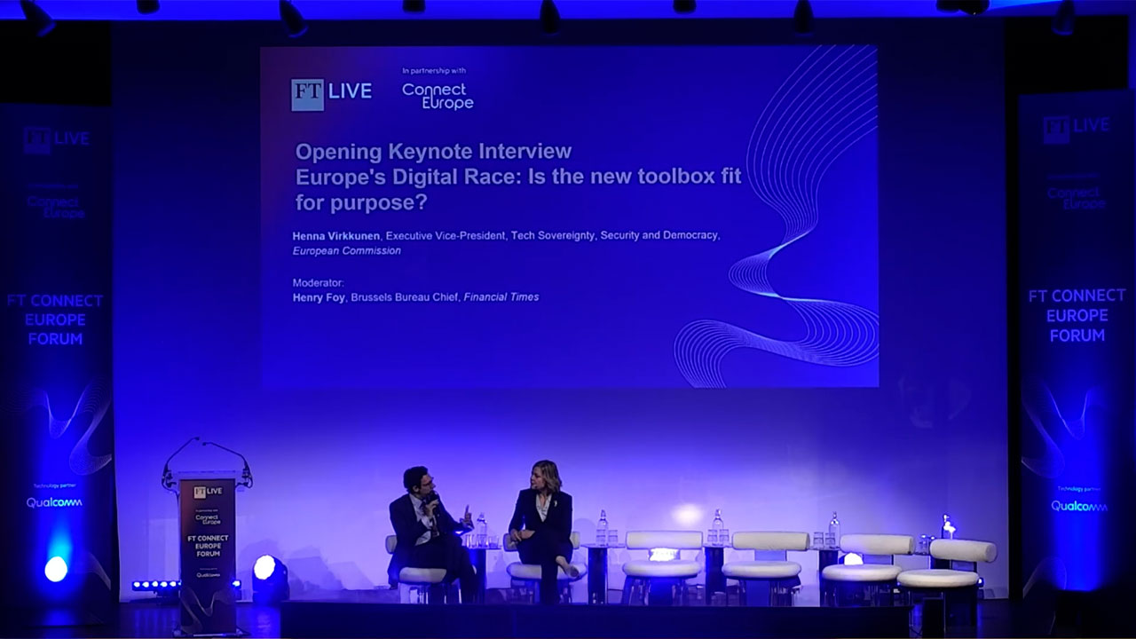 En una entrevista en directo conducida por Henry Foy, corresponsal jefe en Bruselas del Financial Times, Virkkunen desgranó los pilares de la nueva agenda regulatoria que Bruselas pretende desplegar en los próximos meses. Su intervención abordó desde la necesidad de crear un verdadero mercado único digital hasta la implementación del Digital Networks Act (DNA), pasando por la reestructuración de las reglas de competencia y el calendario de aplicación del AI Act.