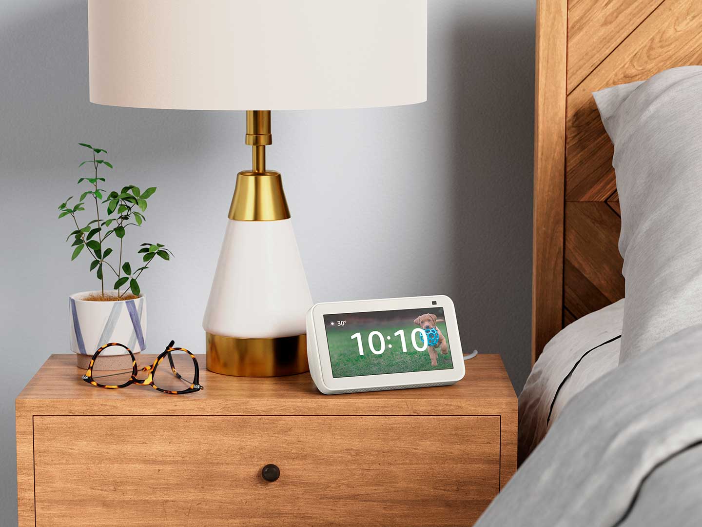 Con su pantalla compacta de 5,5 pulgadas, el Echo Show 5 encaja fácilmente en cualquier habitación de casa. Además, al estar disponible en tres colores –Antracita, Blanco y el recién estrenado Azul marino– se integra perfectamente en la decoración de tu hogar. Puedes empezar el día con una Rutina de Alexa que encienda las luces compatibles y active una alarma con tu canción favorita. También puedes ponerte al día con el resumen de noticias y la información deportiva destacada, establecer alarmas y recordatorios, revisar tu calendario o reproducir música y series, simplemente usando tu voz.