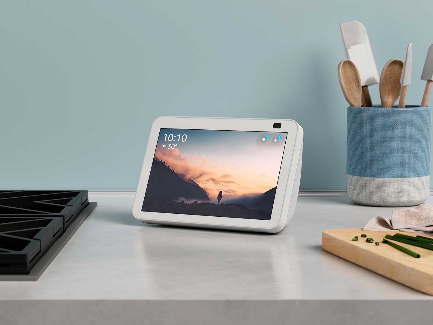 Echo Show 8—Con una cámara gran angular de 13 megapíxeles, que te mantiene en el encuadre