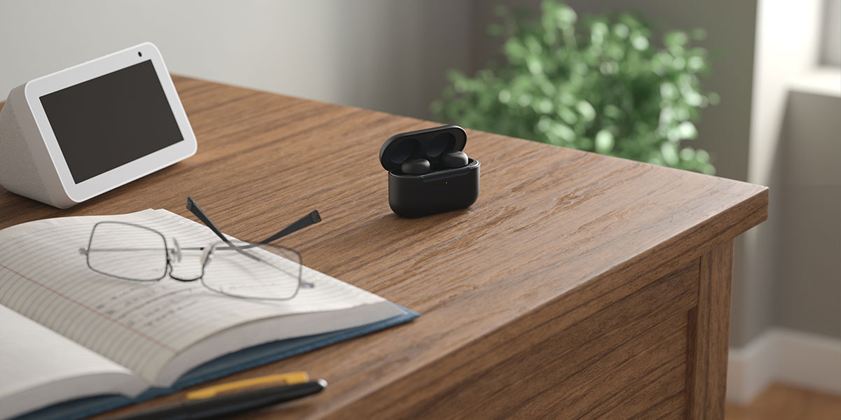 Los Echo Buds ofrecen hasta cinco horas de reproducción de música con una sola carga, con cancelación activa de ruido y acceso a Alexa en modo manos libres, y el estuche cargador proporciona dos cargas adicionales para un total de hasta 15 horas de reproducción de música.