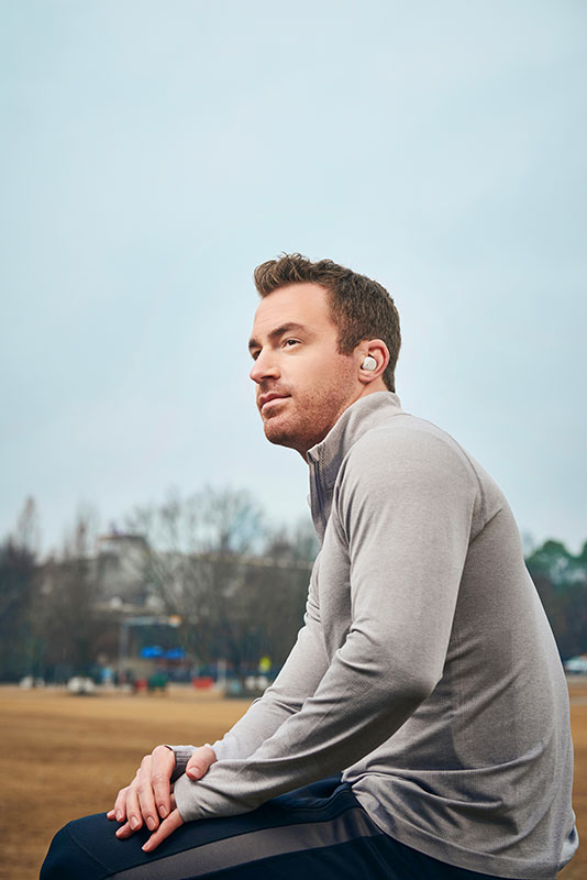 Para activar la cancelación activa de ruido, solo tienes que mantener pulsado cualquiera de los auriculares o simplemente decir: «Alexa, activa la cancelación de ruido». Cuando quieras escuchar lo que ocurre a tu alrededor, activa el modo entorno manteniendo pulsado cualquiera de los auriculares o diciendo: «Alexa, desactiva la cancelación de ruido». Con el modo entorno activado, puedes ajustar fácilmente la cantidad de sonido ambiental que escuchas a través de los ajustes del dispositivo en la aplicación Alexa.
