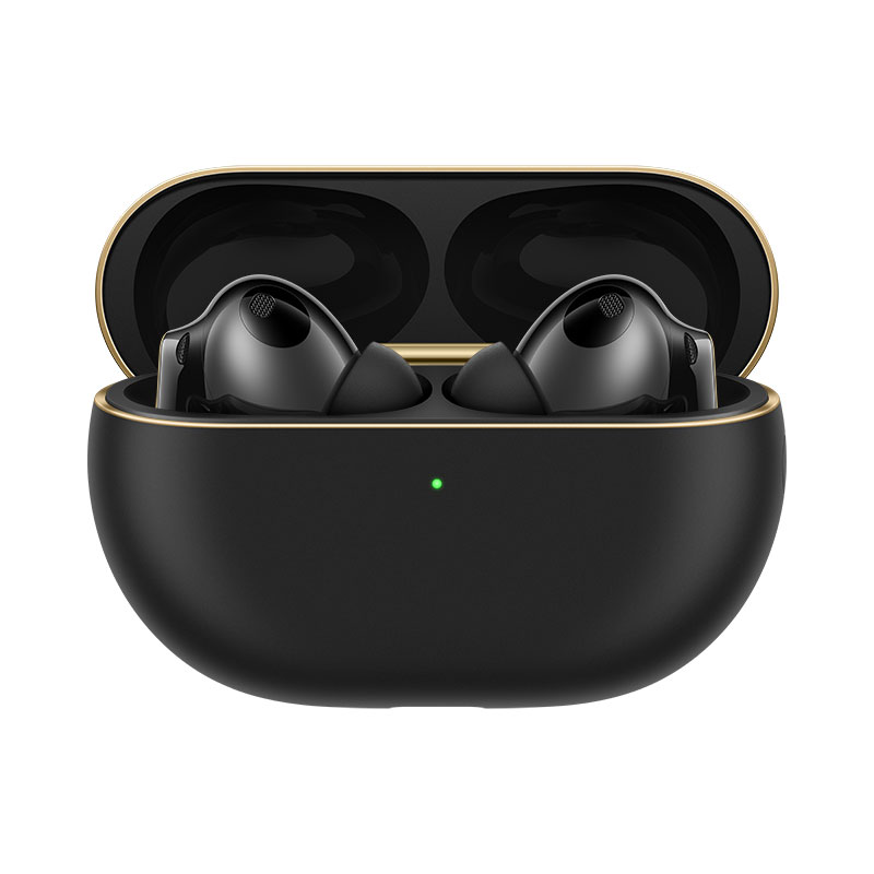 El diseño de los HUAWEI FreeBuds Pro 4 se inspira en los instrumentos de cuerda, con acabados detallados y una construcción que combina funcionalidad y estética. Están disponibles en tres colores: negro, blanco y verde, con una superficie protegida por varias capas de laca que refuerzan su durabilidad. Además, el logotipo dorado de HUAWEI SOUND destaca en su carcasa como un elemento distintivo.