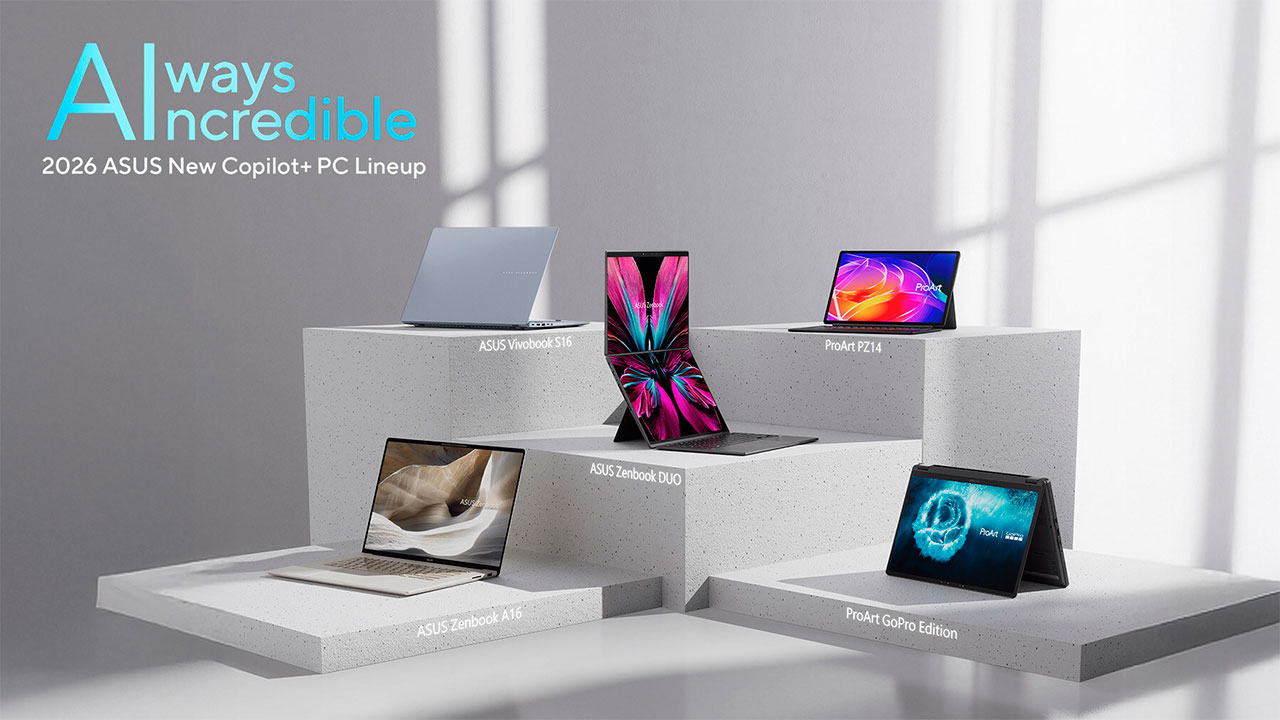 ASUS ha presentado en CES 2026 su nueva gama de portátiles con inteligencia artificial integrada, encabezada por el Zenbook DUO de doble pantalla y una edición limitada del ProArt GoPro Edition. La compañía taiwanesa apuesta por una arquitectura centrada en los Copilot+ PC, una categoría emergente que combina hardware optimizado para IA con aplicaciones propietarias y soporte nativo para los últimos procesadores de AMD, Intel y Qualcomm.