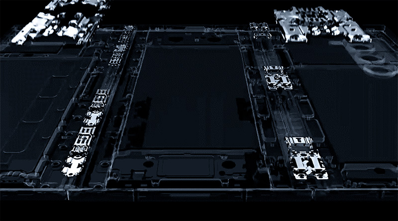 El dispositivo incorpora una arquitectura interna singular. El mecanismo se articula mediante dos bisagras de dimensiones distintas que operan de forma coordinada para repartir las cargas del movimiento y minimizar holguras. Esta elección técnica refleja una tensión clásica en los diseños multifolding: mientras más paneles se añaden, más difícil resulta mantener un plegado uniforme sin incrementar el grosor.