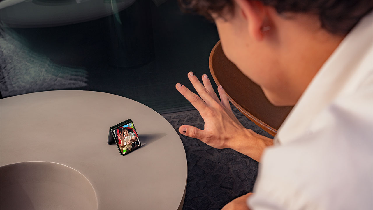 El Motorola razr 50 ultra destaca por su versatilidad gracias a las posiciones FlexView, que permiten colocar el dispositivo en diferentes ángulos sin necesidad de trípode. Esta función es especialmente útil para capturar fotos o vídeos sin vibraciones, ofreciendo una estabilidad mejorada. Un ejemplo clave es el modo videocámara, que permite plegar el teléfono horizontalmente para facilitar el zoom o el control de la grabación con un simple toque. Además, la función vista previa dual permite a los sujetos de la fotografía verse a sí mismos en la pantalla externa, lo que resulta ideal para obtener las mejores tomas.