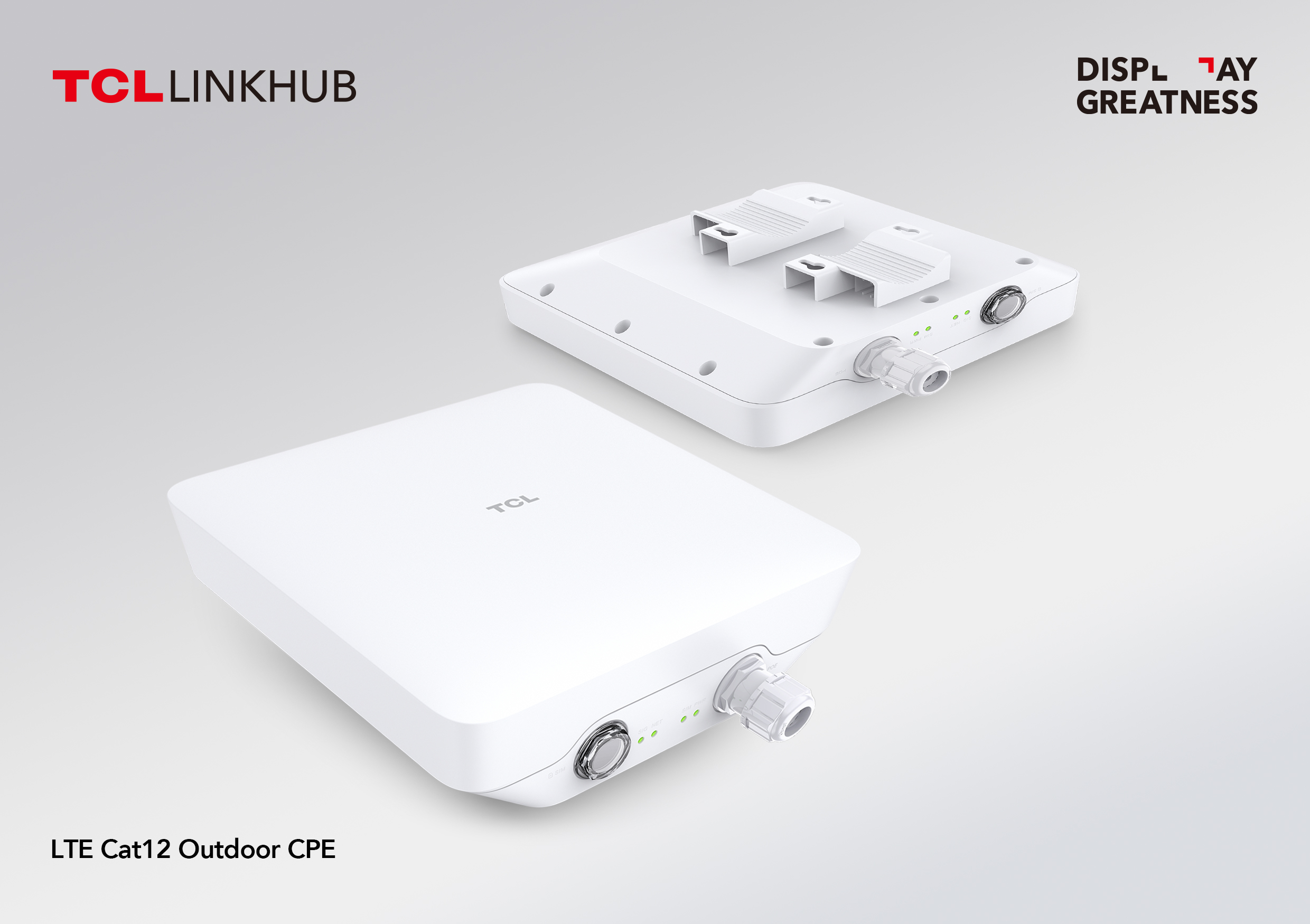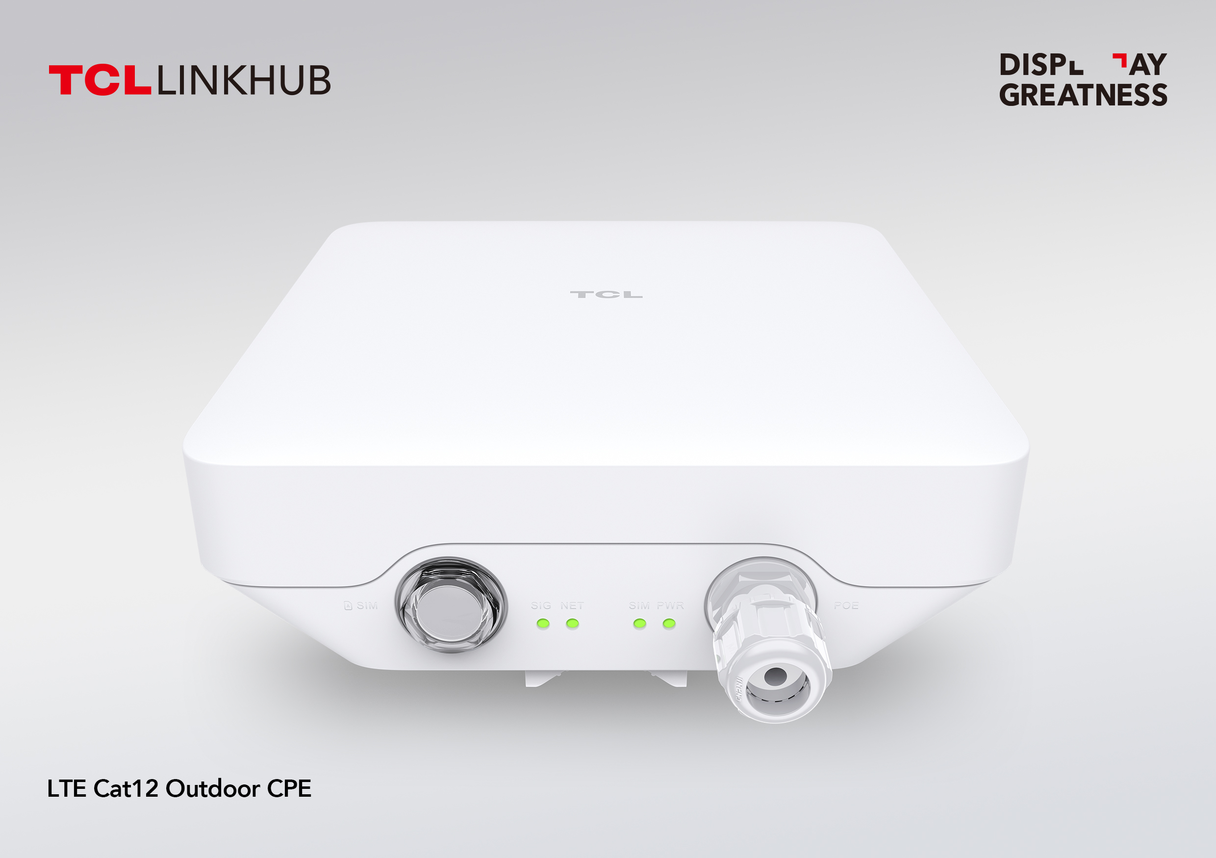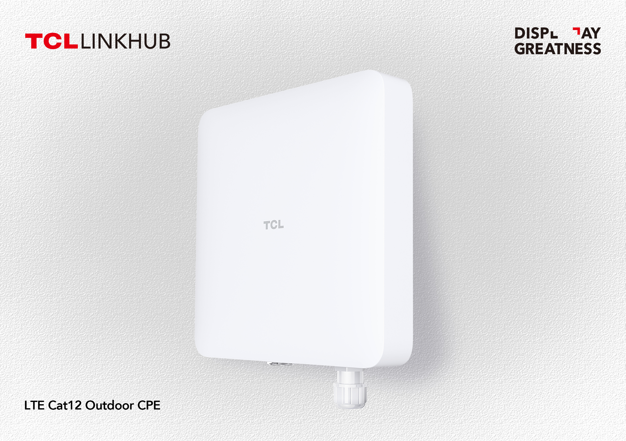 Con el TCL LINKHUB 4G Outdoor CPE, lograr una mejor cobertura de banda ancha LTE ahora es posible incluso en las zonas más remotas. Especialmente diseñado para uso en exteriores con una protección contra el polvo y el agua de calificación IP67, el TCL LINKHUB 4G Outdoor CPE utiliza antenas MIMO 4X4 de alta frecuencia con una señal potenciada para salvar la distancia entre el hogar y la torre LTE más cercana, y cubrir grandes áreas con conectividad 4G Cat12.