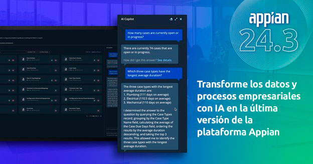 La última versión de la Appian Platform está diseñada para abordar los desafíos contemporáneos de las empresas al gestionar grandes volúmenes de datos y procesos complejos. Entre las mejoras más destacadas se encuentran las nuevas capacidades del AI Copilot, que permiten a los usuarios interactuar de manera más intuitiva con sus datos y documentos, optimizando el tiempo de respuesta y la precisión de la información.