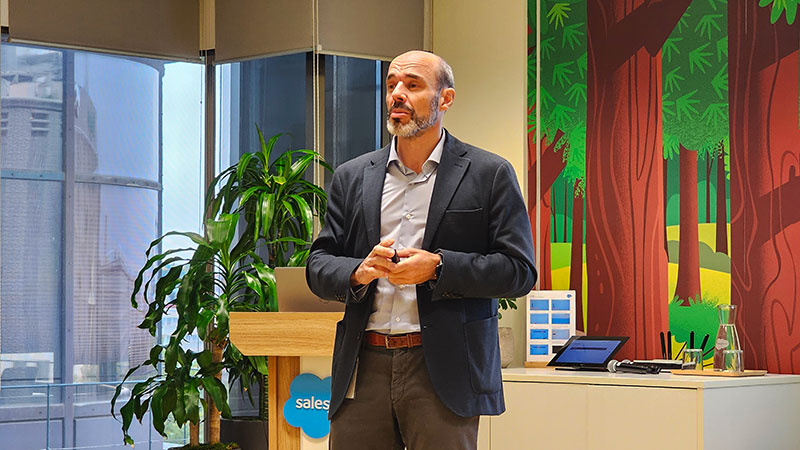 Enrique Polo de Lara, SVP y Country Manager de Salesforce España, lo resume de forma directa: los agentes no son un simple chatbot mejorado, sino un nuevo tipo de “empleado digital” capaz de razonar, planificar y ejecutar tareas de forma autónoma. En sus palabras, “este es el año de los agentes. Mi opinión es la década de los agentes”. La promesa va más allá de la automatización clásica, apunta hacia “la hiperpersonalización y la automatización a escala cliente a cliente”, apoyándose en la calidad del dato y en una arquitectura preparada para gobernar decenas o cientos de agentes por organización.