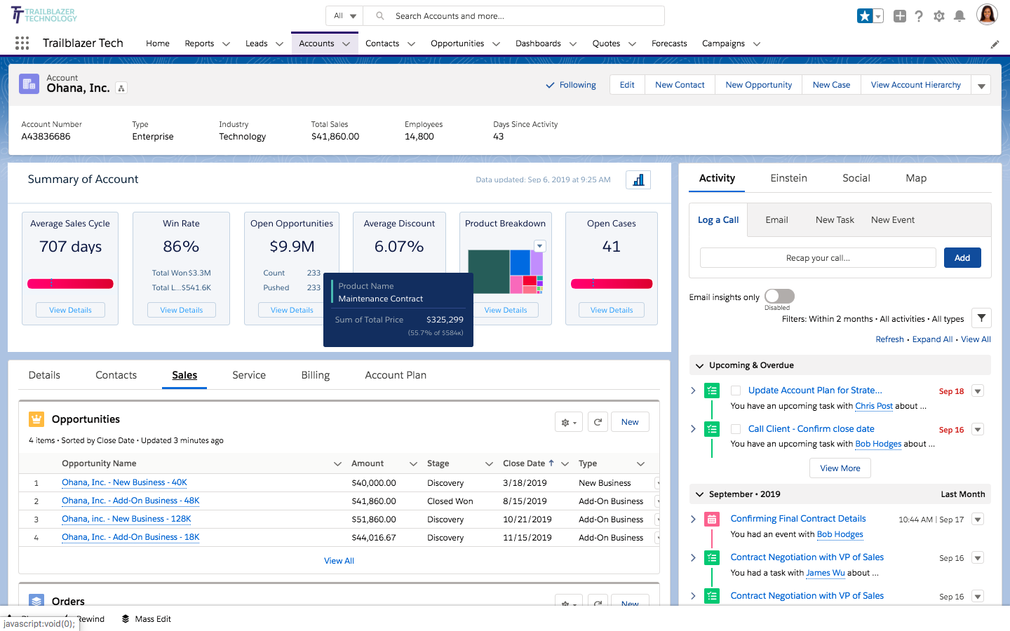 - Cytiva es un proveedor mundial de tecnologías y servicios que avanzan y aceleran el desarrollo y la fabricación de productos terapéuticos. Durante la pandemia de COVID-19, la demanda de los clientes se disparó, por lo que era fundamental hacer avanzar las nuevas oportunidades y los pedidos lo más rápidamente posible. En cuestión de semanas, Cytiva implementó un panel de control dedicado en Sales Cloud, que permitía a los líderes de Cytiva realizar un seguimiento de las oportunidades por cliente, país y producto, y compartir esta información con los equipos de finanzas y fabricación. «Salesforce ha ayudado a que nuestros equipos colaboren de forma más eficaz en un entorno de ventas altamente virtual y rico en datos, dentro de la plataforma Salesforce», dijo Conor McKechnie, CMO de Cytiva. «Esto ha mejorado nuestros esfuerzos de planificación de cuentas, ya que la comunicación entre equipos es instantánea y en tiempo real. Somos más eficaces, más productivos y estamos mejor informados de lo que ocurre».