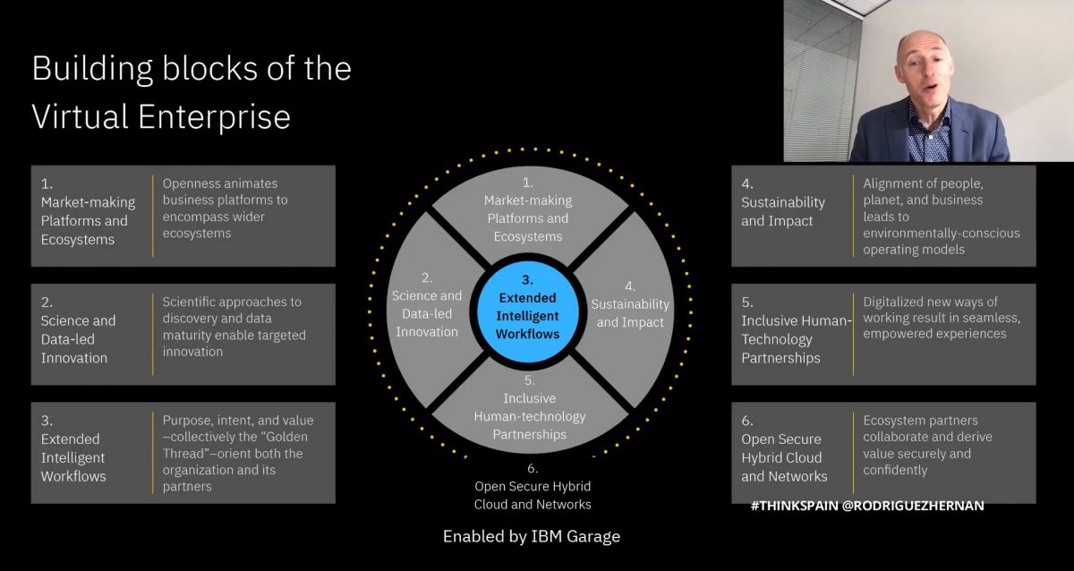 • Sostenibilidad, resiliencia, inteligencia artificial, cloud híbrida, transformación digital y computación cuántica son algunos de los temas que se trataron hoy en la primera jornada del Think Summit España 2021, el evento anual de referencia de IBM.