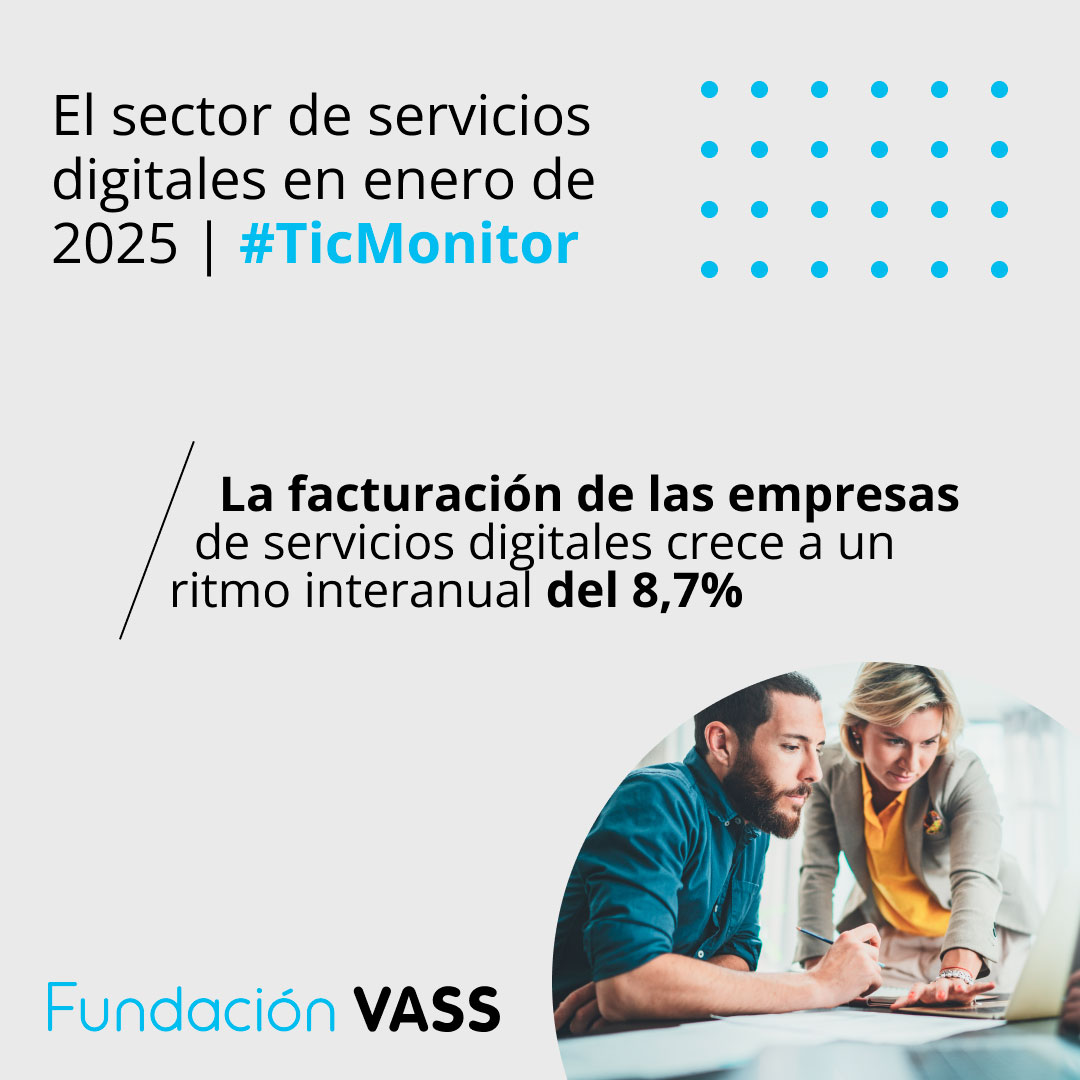 El sector de servicios digitales en España registró un aumento interanual del 8,7% en su facturación en octubre de 2024, según el barómetro TIC Monitor , elaborado por la Fundación VASS y el Centro de Predicciones Económicas (CEPREDE). Este crecimiento sitúa el promedio de los primeros diez meses del año en un sólido 9,5%, destacando la resiliencia del sector frente a un entorno económico global más incierto.