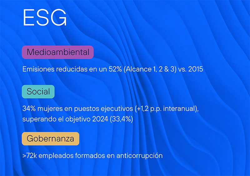 En el ámbito de la gobernanza, más de 72.700 empleados han recibido formación en anticorrupción y se han realizado cerca de 21.000 auditorías de sostenibilidad a proveedores. Además, el 37,4% de la financiación total de la compañía está vinculada a criterios sostenibles, acercándose al objetivo del 40% fijado para 2026.