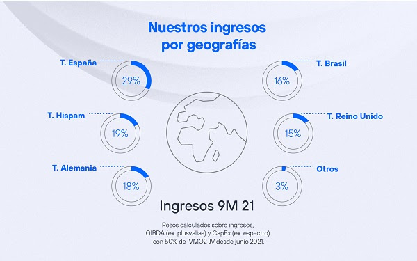 El OIBDA ha crecido un 39,8% en el trimestre en términos reportados, hasta los 3.734 millones de euros, y más del doble en los nueve primeros meses, hasta los 20.620 millones de euros. Este incremento se deriva principalmente de las plusvalías procedentes de las operaciones cerradas durante 2021, pero también se beneficia de las eficiencias y el control de costes conseguidos gracias a la gestión aplicada.