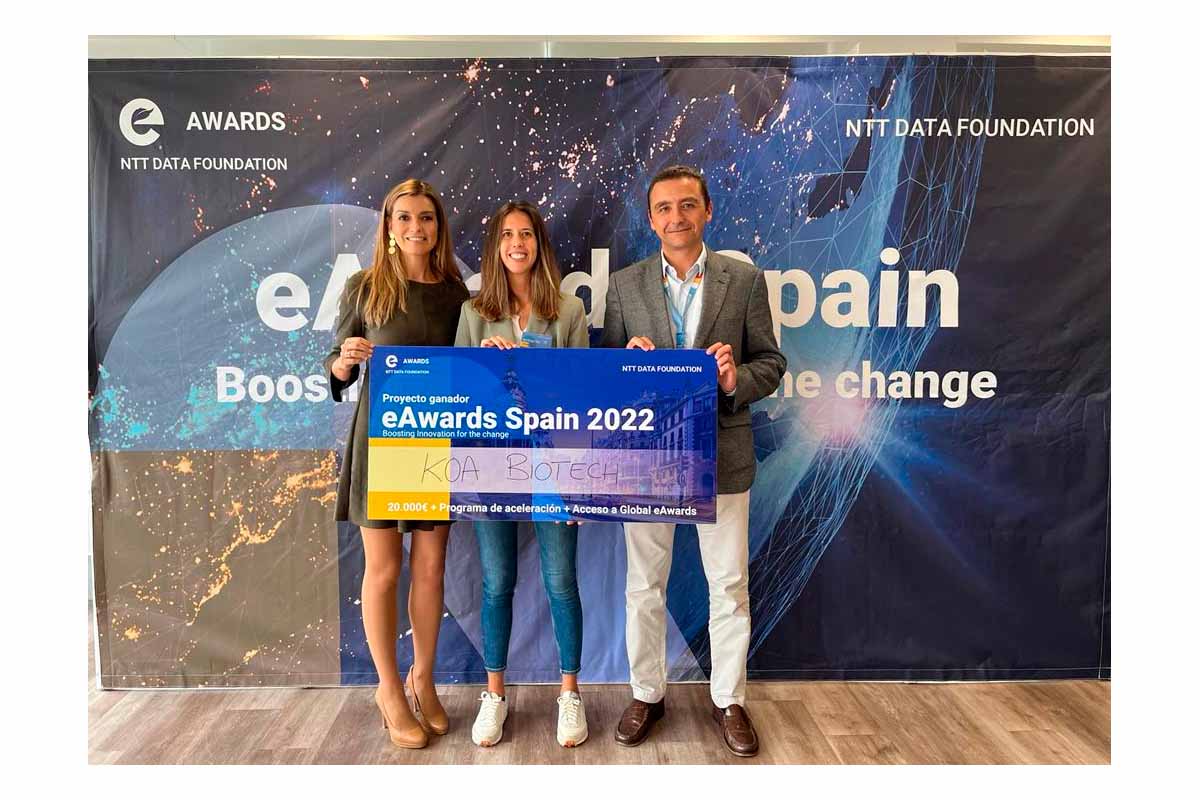 KOA Biotech recibe un premio en metálico de 20.000 euros, acceso a un programa de aceleración personalizado y representará a España en la gran final de los Global eAwards, donde el próximo 25 de octubre competirá con los triunfadores de otros 12 países de Europa y América por una gratificación adicional de 60.000€ y un programa intensivo y personalizado de aceleración.