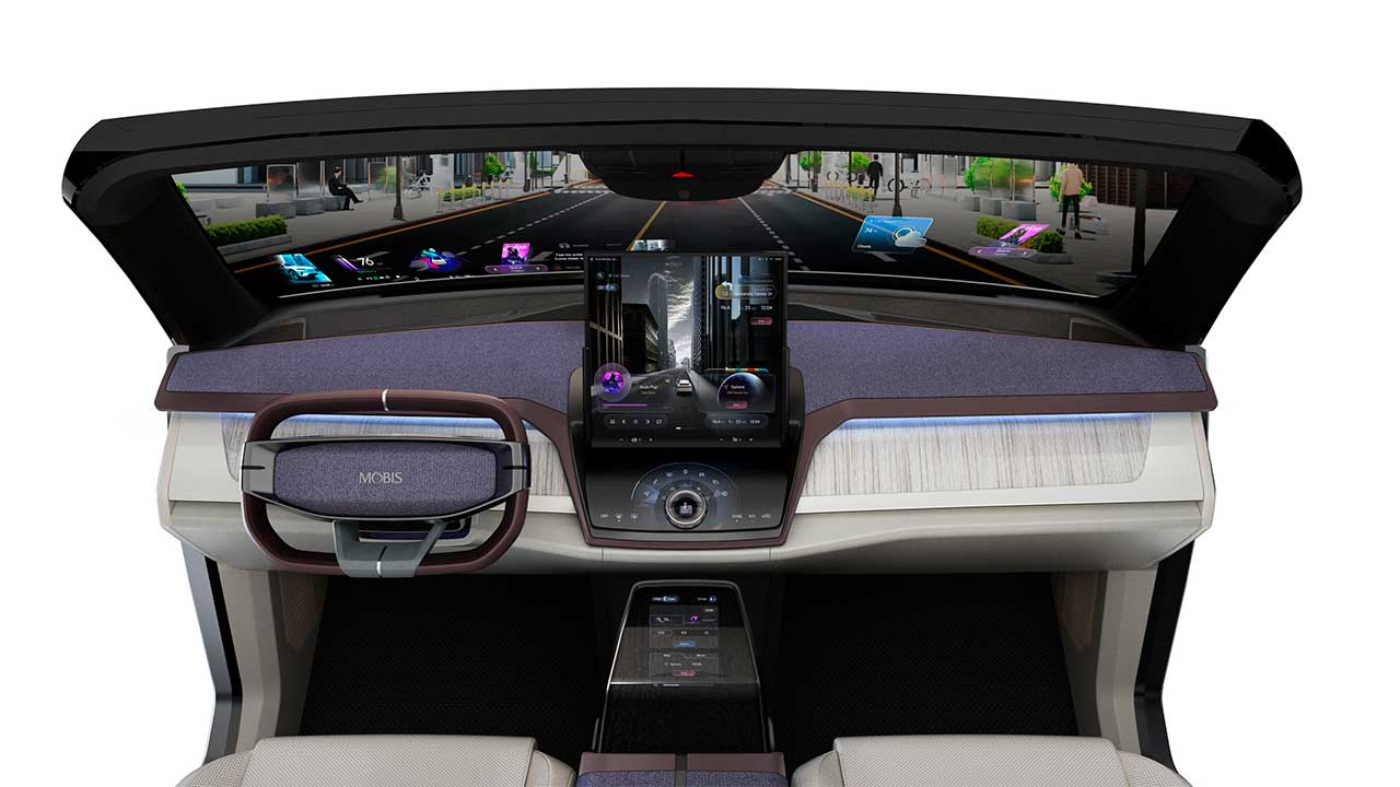 El parabrisas holográfico (HWD, por sus siglas en inglés), desarrollado en colaboración con la alemana Zeiss, convierte toda la superficie frontal del cristal en una pantalla de gran formato. La información de conducción se proyecta directamente sobre el parabrisas, eliminando la necesidad de mirar hacia el cuadro de instrumentos. Además, permite que los pasajeros accedan a contenidos independientes sin interferir en la experiencia del conductor. Hyundai Mobis prevé iniciar su producción en serie en 2029.