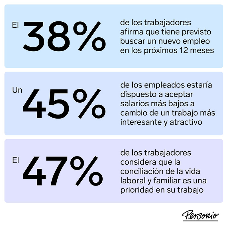 La investigación, realizada entre más de 1.000 empleados y 500 responsables de RR. HH. en España, revela que casi la mitad (44%) de los trabajadores afirma que tiene previsto buscar un nuevo empleo en los próximos 12 meses, independientemente de cómo evolucione la economía. Mientras tanto, el 47% está motivado para hacerlo cuando la situación económica mejore, lo que, según los indicadores económicos, podría ocurrir en los próximos meses.