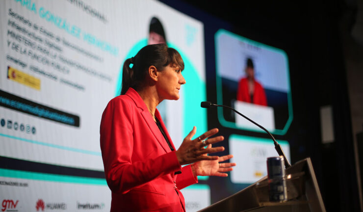 España refuerza su liderazgo en conectividad y transformación digital con nuevas inversiones en fibra óptica y 5G, anunció María González Veracruz en el 38º Encuentro de AMETIC en Santander.