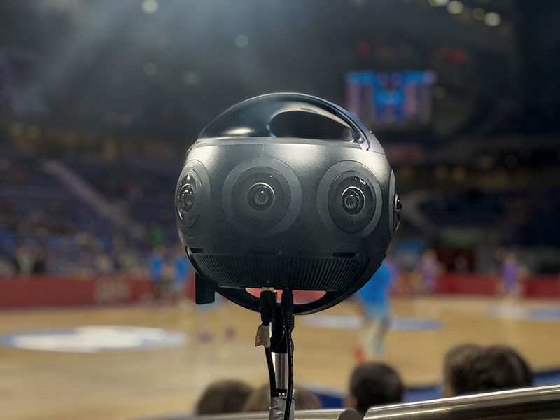 La empresa YBVR desplegó cámaras de vídeo 180° y 360° en la pista de baloncesto, con el objetivo de ofrecer una experiencia inmersiva tanto a los asistentes al estadio como a los espectadores en casa.