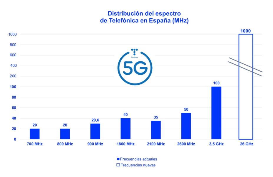 Telefónica ha resultado adjudicataria de 1 GHz en la banda 26 GHz por un importe total de 20 millones de euros, lo que le permite completar su espectro y desplegar en todas las bandas necesarias para consolidar su liderazgo en 5G tanto en el ámbito residencial como empresarial.