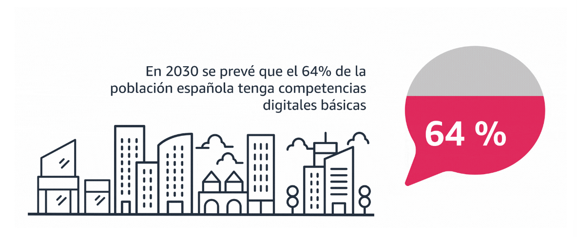 Gran parte del impacto económico de la agenda de la Década Digital provendrá del uso de tecnologías como el aprendizaje automático para automatizar las tareas existentes. Es muy probable que esto aumente la necesidad de que los sectores privado y público apoyen la adopción y mejora de habilidades entre los trabajadores existentes, a medida que las funciones laborales vayan evolucionando. AWS continuará ayudando a España a gestionar la escasez de habilidades digitales y relacionadas con la nube mediante formación y apoyo a través de diversos programas.